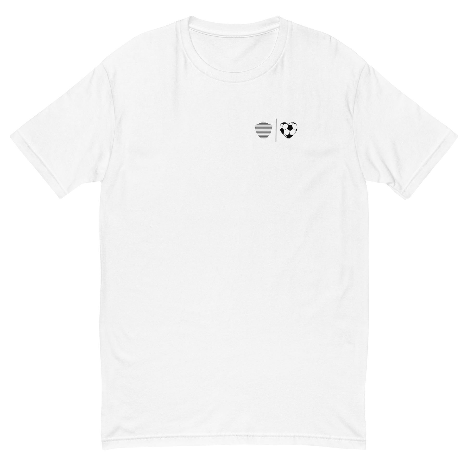 Soccer/Football tee, white. S+F soccer love logo design I.