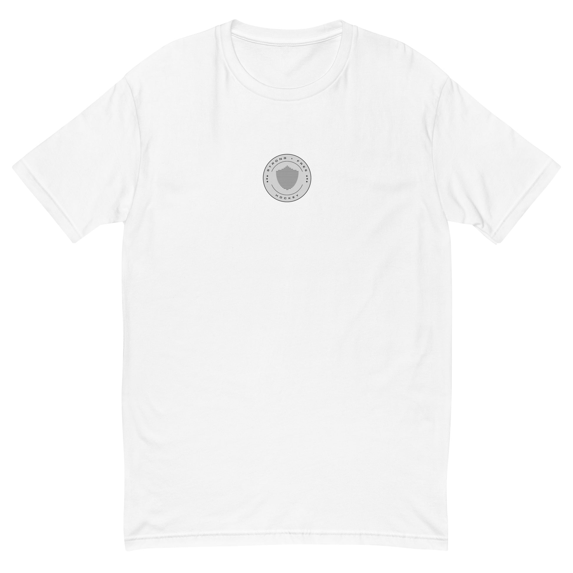 Men's hockey tee, various colors. S+F signature shield logo design, reverse grey crest.
