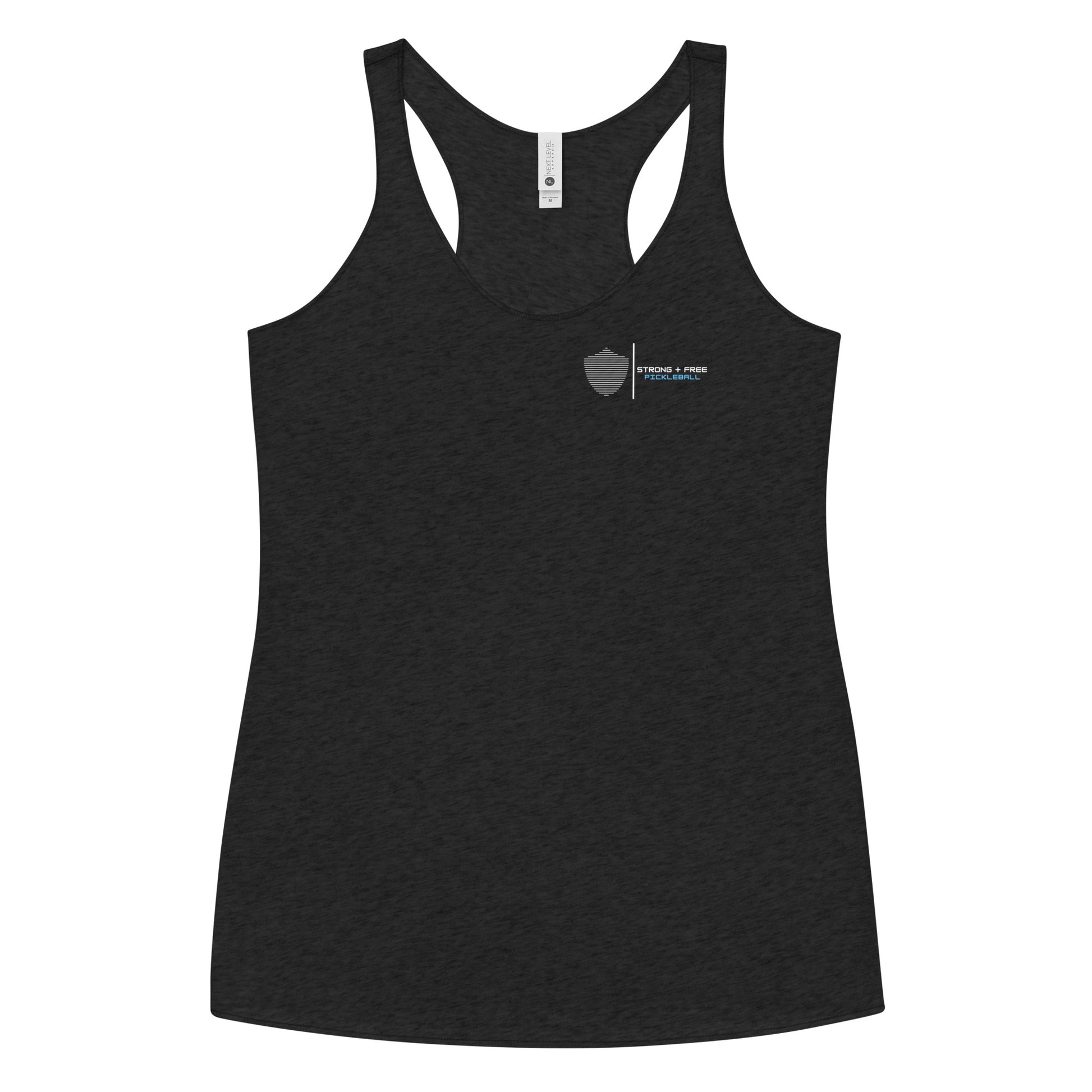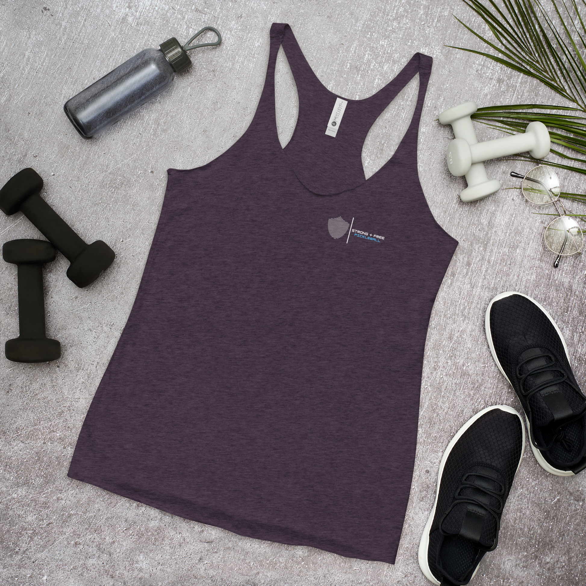 Women's Racerback Tank, various colors. S+F signature shield logo design II.